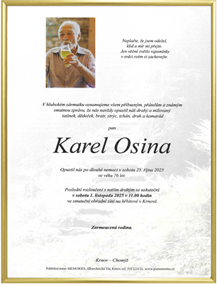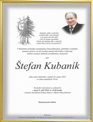 Stejně jako zrození nového života , tak i jeho konec, jsou přirozenou součástí lidského života. Poslední rozloučení je jednou z posledních služeb, kterou můžeme zesnulému prokázat a každý, i ten nejobyčejnější a ve svém životě osamocený člověk, si zaslouží naši úctu a pokoru při jeho důstojném vyprovázení na poslední cestě.