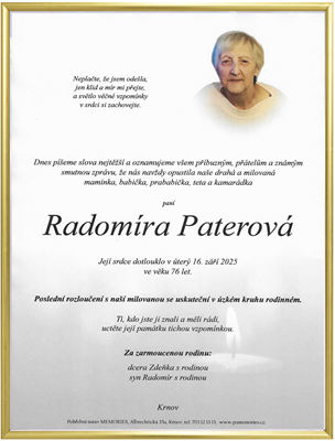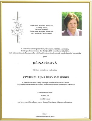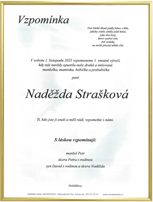 Jsme přesvědčeni, že nabídka našich služeb, spolu se snahou všech pracovníků Pohřebního ústavu Memories o poskytování kvalitních služeb, vytvoří dobrý základ pro to, aby si pozůstalí a smuteční hosté odnášeli z posledního rozloučení se svým blízkým sice smutnou vzpomínku, ale s pocitem, že vše proběhlo podle jejich představ a o jejich blízkého bylo na jeho poslední cestě dobře postaráno.